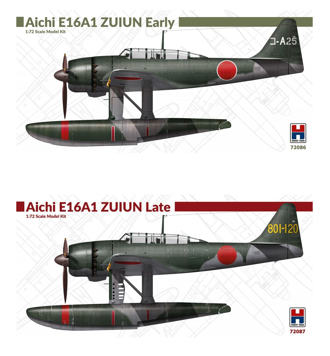 Aichi E16A1 Zuiun. A set of 2 box arts for Hobby2000 model kit boxes.